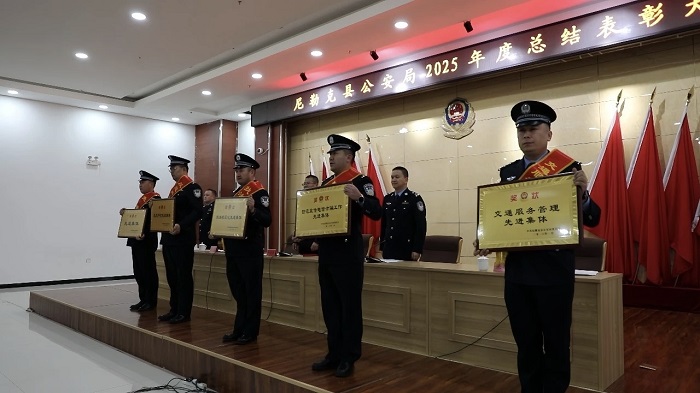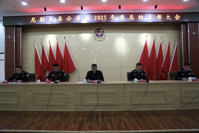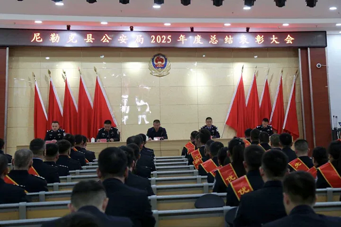 2026年1月26日,尼勒克县公安局召开2025年度总结表彰大会。尼勒克县委常委、政法委书记徐亚峰出席会议并讲话,公安局党委班子成员、局机关各部门全体民辅警及受奖代表共计180余人参加。