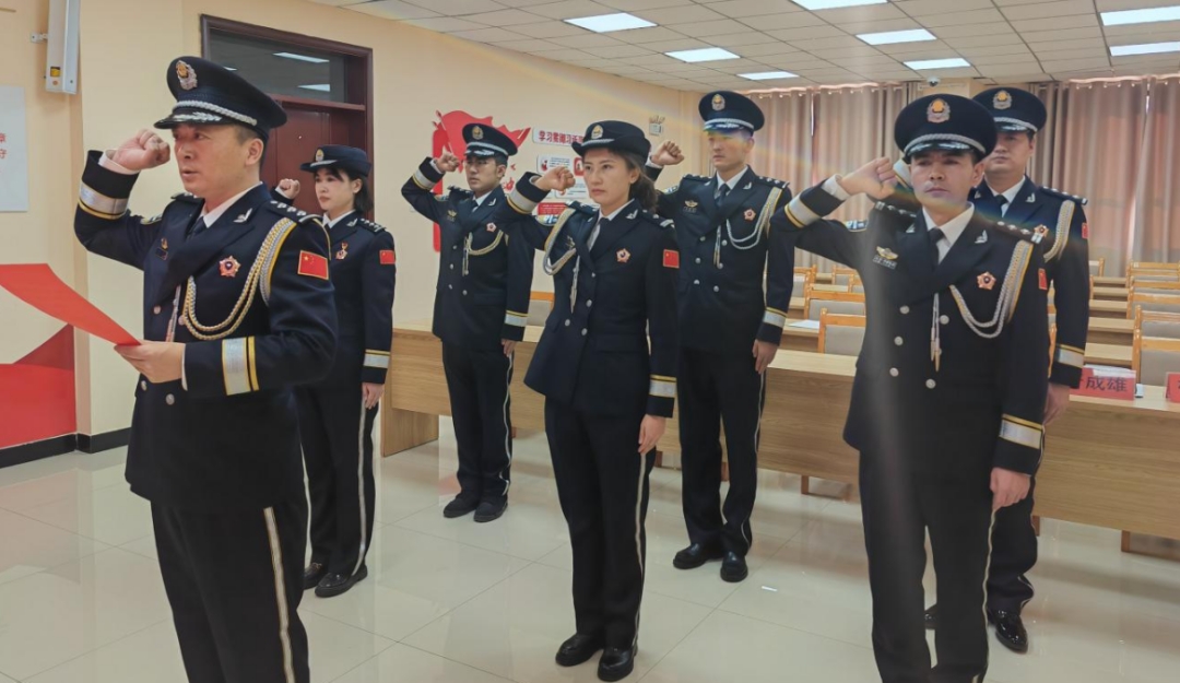 在庄严肃穆的氛围中,全体司法警察面向警旗整齐列队,高举右拳重温入警誓词。“我是中国人民警察,我宣誓……”铿锵誓言回荡现场,彰显了法警队伍永葆初心、勇担使命的坚定信念。