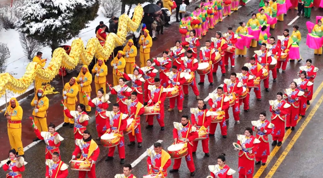 “今天表演社火,红红火火过大年,这是祖祖辈辈传下来的文化根脉,我们要继承发扬,祝大家元宵节快乐。”
