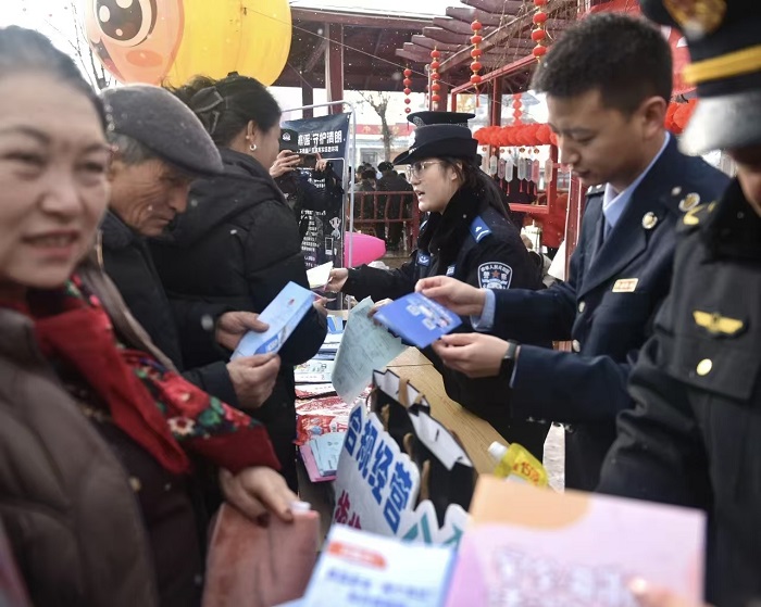 活动现场,民辅警围绕与群众生产生活密切相关的法律法规,重点讲解《民法典》《治安管理处罚法》《道路交通安全法》《反电信网络诈骗法》等内容,结合乡村高发的电信诈骗、酒驾醉驾、矛盾纠纷、野生动物保护、消防安全等典型案例,用通俗易懂的语言以案释法、以案普法,提醒群众守好“钱袋子”、护 好“平安家”。