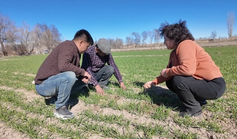 苏布台乡尤喀克买里村村民阿里木江·艾合塔木江说:“今年我们家种了15亩冬小麦,在农技人员的帮助下,学会了科学浇水、合理施肥,小麦长势一天比一天好,我们种粮更有干劲、更有盼头。”